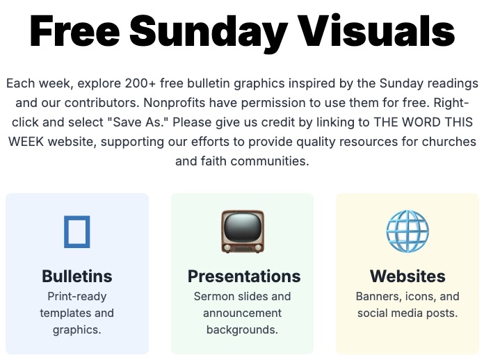 TWTW is the No. 1 Resource on the web for hundreds of FREE infographics updated weekly for homily planning, websites, bulletins, Bible study and class presentations.