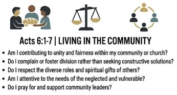 - Murmuring and Discord: The deacons were appointed because of “complaining.” Do I contribute to gossip or divisiveness within my parish or community instead of seeking constructive solutions?