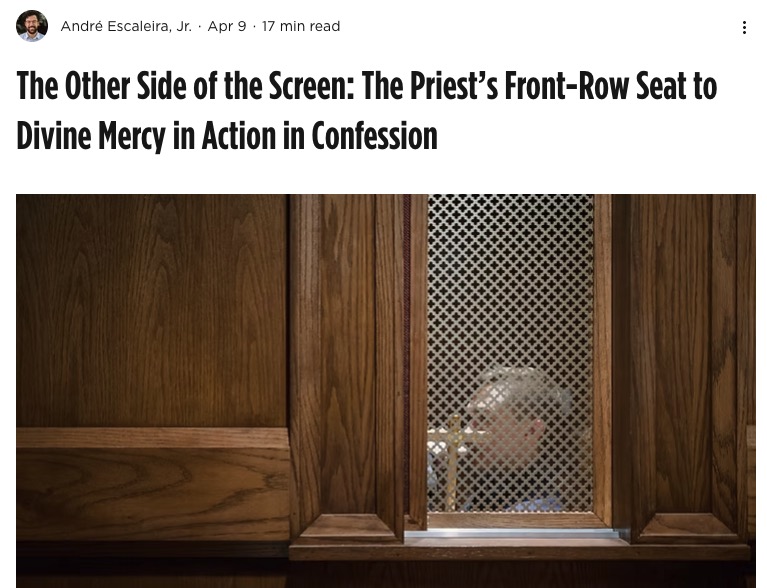 Many of us might be familiar with what happens in that closet-sized space — the confessional — as sinner after sinner comes before the Divine Mercy of Jesus, bursting forth from his Sacred Heart, which burns for merciful love of them, and asks God’s forgiveness for their faults through the priest on the other side of the screen.