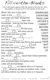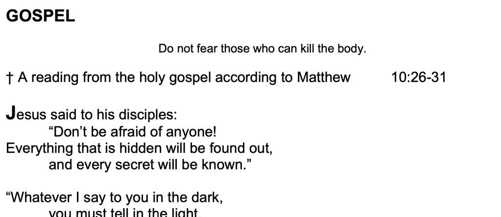 Todayβs readings remind us that God watches over and protects us. Together with your family listen to the song βBe Not Afraid,β by Bob Dufford. (It can be downloaded from i-tunes.) Discuss: How does faith in Christ help you when you are afraid?