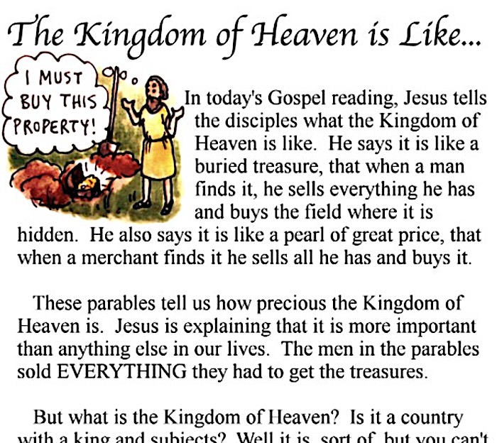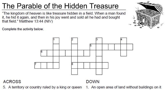 Take time to examine your treasures in this life. Make a family treasure box. Have the members of your family place one of their prized treasures in the box. If their treasure cannot be placed in the box, have them write its name on a piece of paper and put that in the box. Talk about those treasures and why they are so meaningful to each person. Sit down around the treasure box. Talk about Godβs love and the treasure of Godβs kingdom. Have your family write down some spiritual treasures that they wish to cultivate. Place the notes in the treasure box.