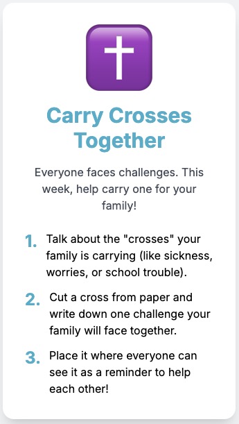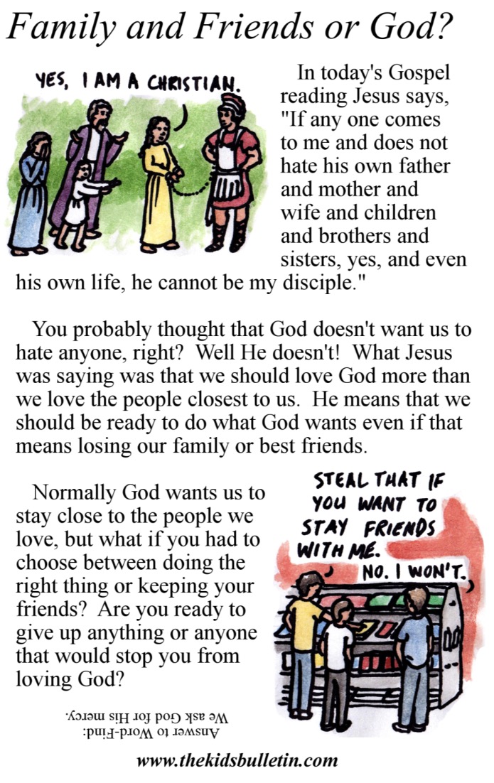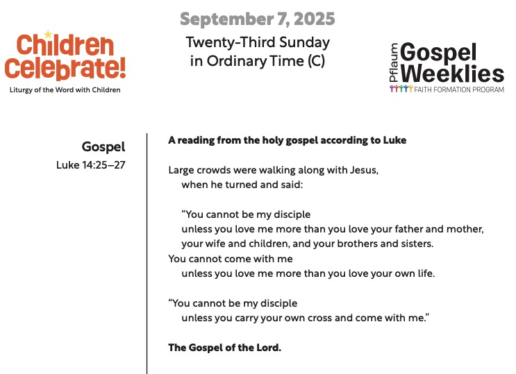 EVERY DAY CAN BE A SUNDAY – CARRY THE CROSS from Luke 14:25-33: Catholic Sunday Gospel Cartoon, Bible Trivia, Fun Facts & Family Discussion Question.