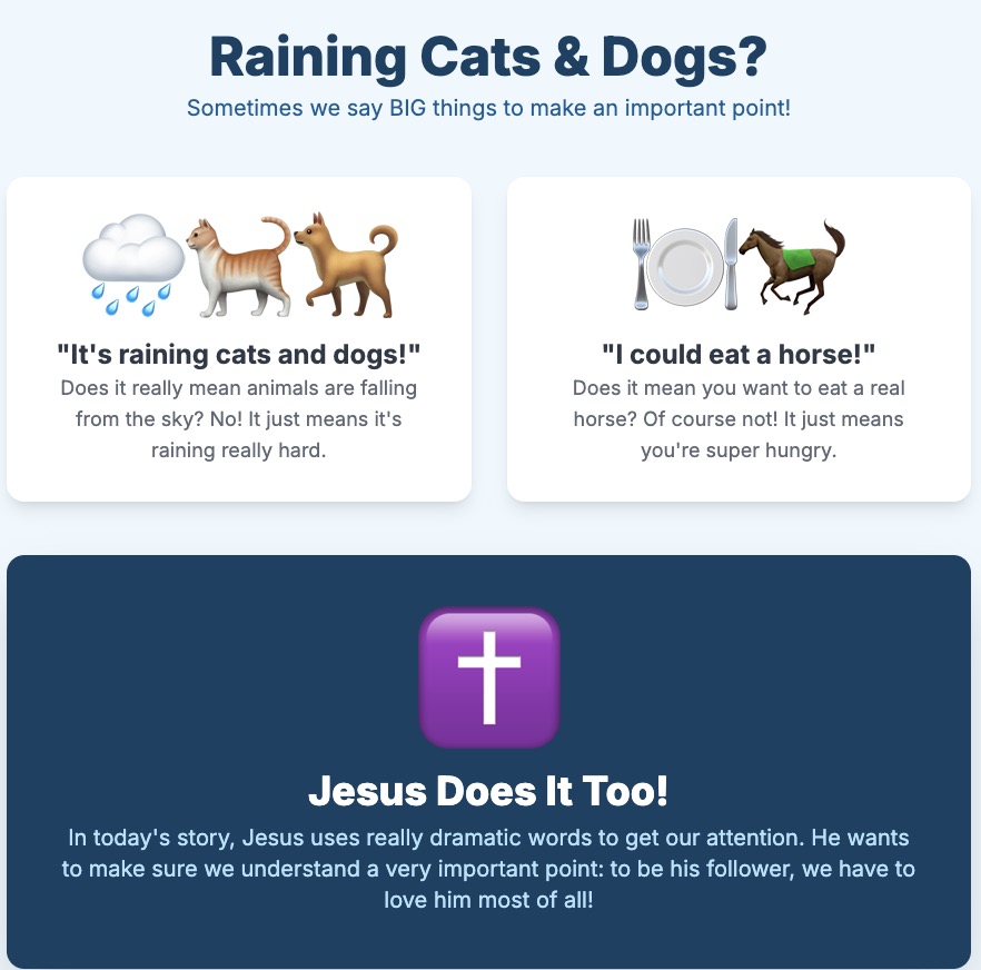 Core Idea: We don't always need to have the perfect words to say. Our actions and our presence can show God’s love more powerfully than anything we could say.