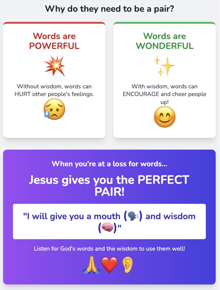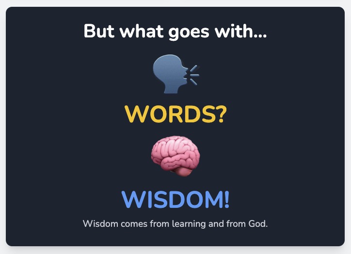 Now let’s talk about something that goes well with words. The Bible teaches us that wisdom is a good thing to fit together with our words. Wisdom, or being wise, comes from studying and learning many things. Wisdom also comes from God.