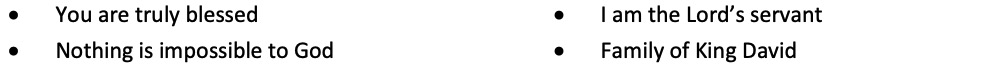 (Point to your sign showing CHRISTMAS.) The angel’s announcement and my announcement are important because they both have to do with Christmas. See the angel that visited Mary in Nazareth was announcing what would happen on the first Christmas. The angel also told Mary that she would be blessed and that the Lord was with her. He told Mary about her special baby who would be born on a special day.
