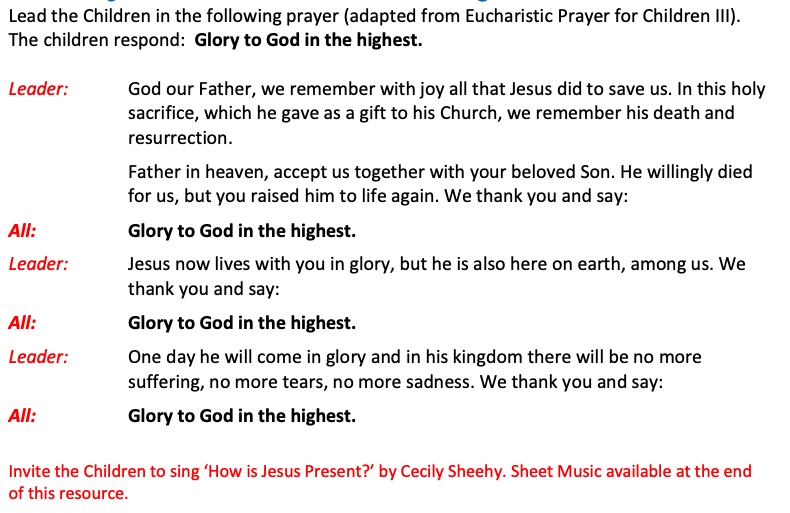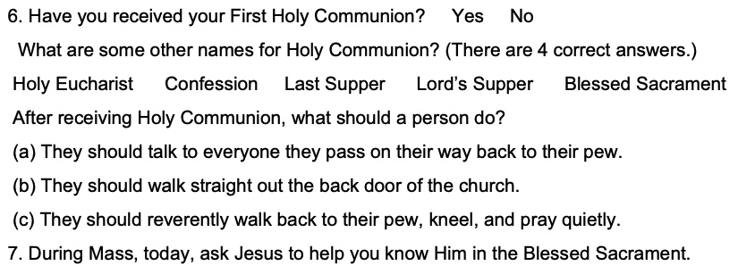 Use some Legos® to build a human shape. Talk about how each piece of Lego® might represent another person in the parish that is part of the Body of Christ. The Church with her members share talent, time and treasure to maintain the Body of Christ. How does that work? Discuss how various talents that parish members share can complete a whole, effective representation of Christ on earth.