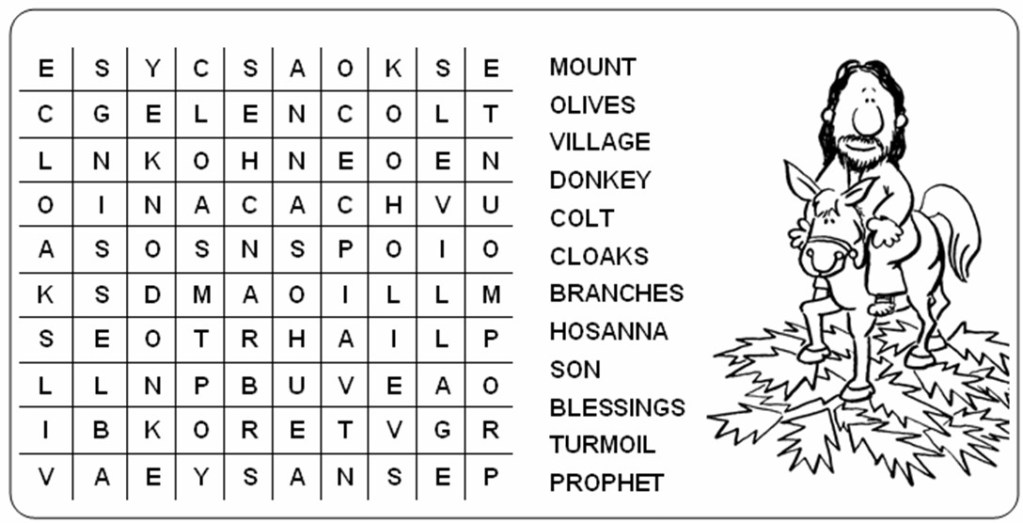 Several word games based on Matthew 21:1-11.