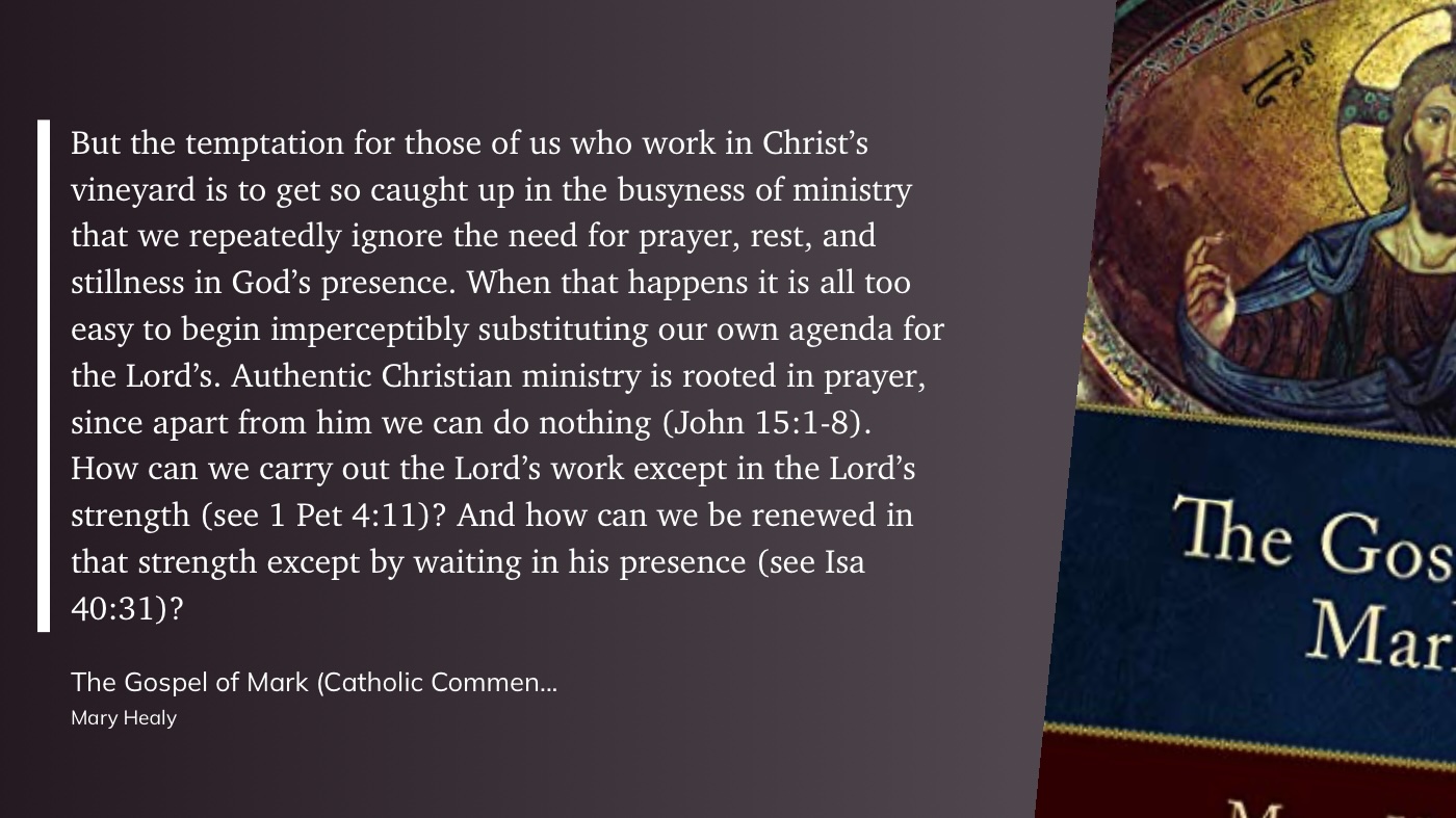 Balancing rest and activity, maintaining prayer during times of refreshment, and showing compassion are important aspects of ministry and following the example of Jesus.