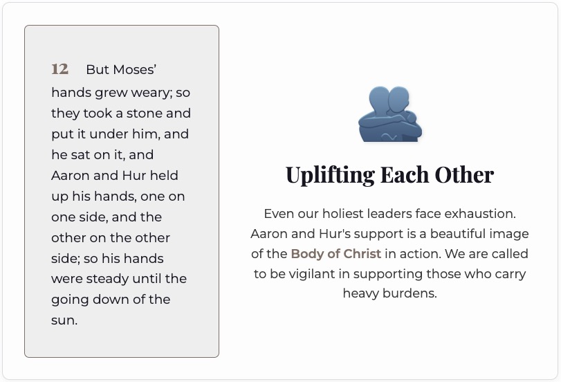 Broding reveals that the story’s focus isn’t the battle, but the physical and spiritual act of intercession. He highlights that Israel’s victory was not secured by one man’s stamina, but by the strength of a community. When Moses grew tired, his friends were there to literally hold him up. This commentary transforms a familiar story into a powerful message about spiritual fatigue and our absolute need for each other.