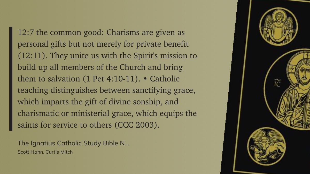 Since the same Spirit distributes (gives) and produces (makes them operate), no one should be puffed up with pride – all is given for the common good. One who possesses a gift and does not share it not only deprives themselves of its benefits, they deprive the entire community and the gift is lost.