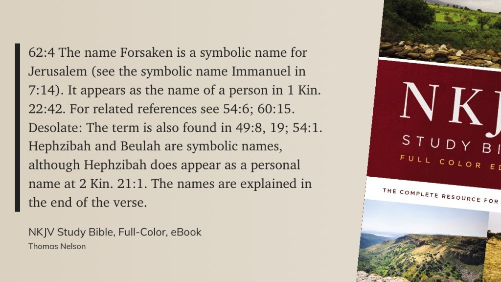 “No more shall you be called ‘Forsaken,’ nor your land called ‘Desolate,’ But you shall be called ‘My Delight,’ and your land ‘Espoused.'”