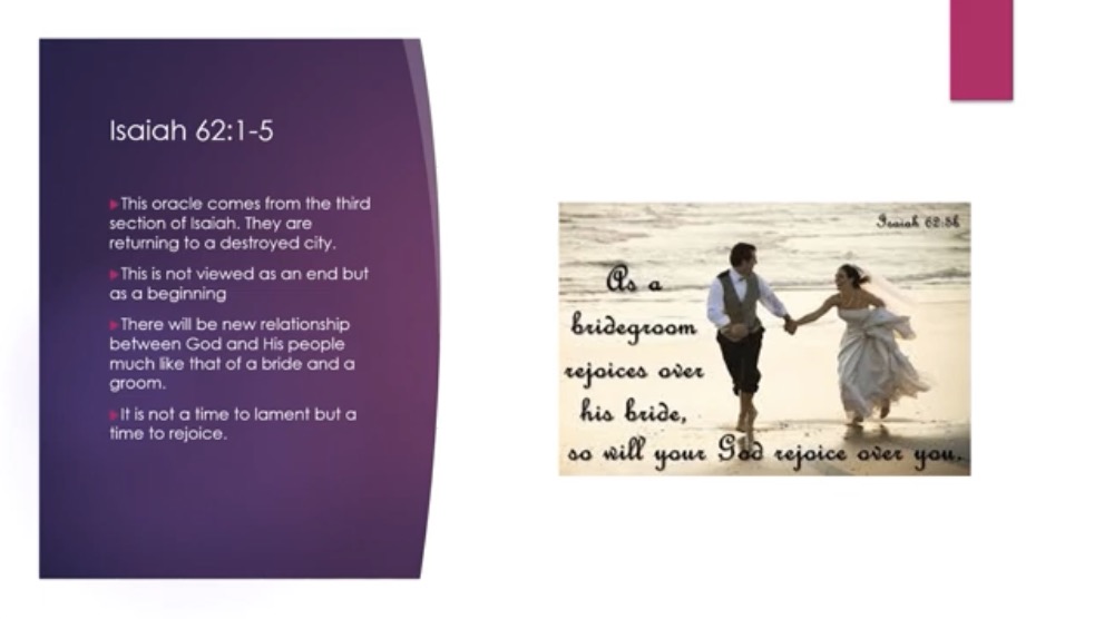 “As a young man marries a virgin, your Builder shall marry you; And as a bridegroom rejoices in his bride so shall your God rejoice in you.”