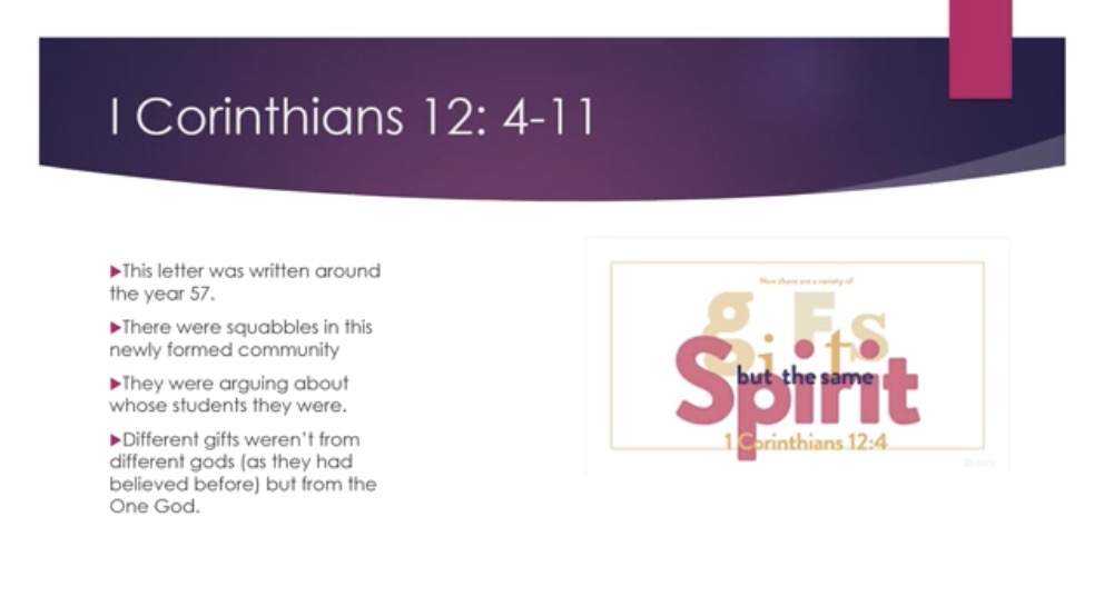 “There are different kinds of spiritual gifts, but the same Spirit.”