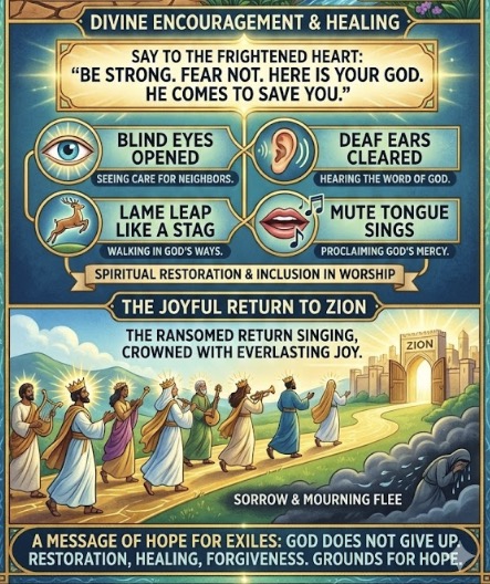 Fr. Galetto analyzes the imagery of Isaiah 35, highlighting the dramatic contrast between the arid desert and the lush splendor of Lebanon as a symbol of Messianic transformation. He notes that this chapter, likely written during the Babylonian Exile (Deutero-Isaiah), serves as a message of hope and restoration following a previous section on judgment. Galetto explains that while the blind and lame were historically excluded from worship, the Messiah’s arrival reverses this status. He interprets these healings metaphorically, suggesting that true salvation involves spiritually hearing God’s word, seeing the needs of neighbors, and walking in the ways of the Lord.
