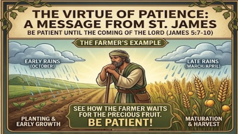 This reflection on the Letter of St. James highlights the central theme of patience amidst persecution. Dating the text to around 90 AD, Fr. Galetto explains that the community was chafing under Roman oppression and anxious for the Lord’s immediate return. The letter serves as a sermon urging believers to live peaceably and avoid grumbling against one another while waiting for judgment. Fr. Galetto clarifies the agricultural metaphor of the “early and late rains,” noting that just as farmers must wait for the harvest, Christians—like the prophets before them—are not exempt from suffering and must endure it with equanimity.