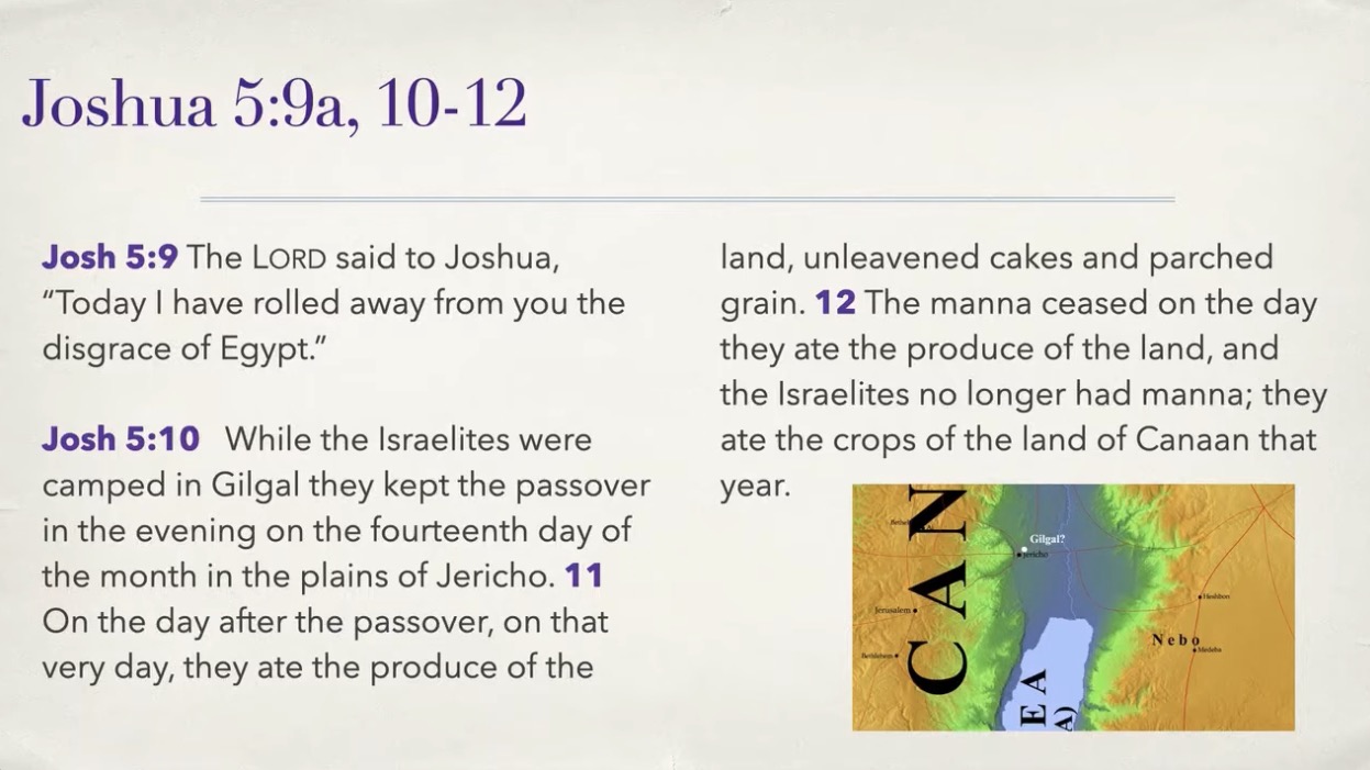 Joshua 5:9a, 10-12 recounts the events following the Israelites’ crossing of the Jordan River into the Promised Land under Joshua’s leadership. The historical and political context of this passage is rooted in the ancient Near Eastern world, particularly in the transition of power from Moses to Joshua and the Israelites’ journey to claim their inheritance.