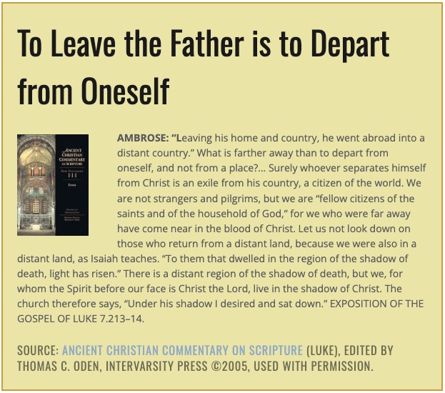 When the young man spent his inheritance foolishly, he found that he was truly a foreigner, someone without a home. To survive, he was willing to work as a swine herder; since Jews considered pigs unclean, the young man made himself unclean. Now he was truly alone, for no Jew even living in a foreign country would help him. The local pagans even despised him; they would not feed him pig food. [13-16]