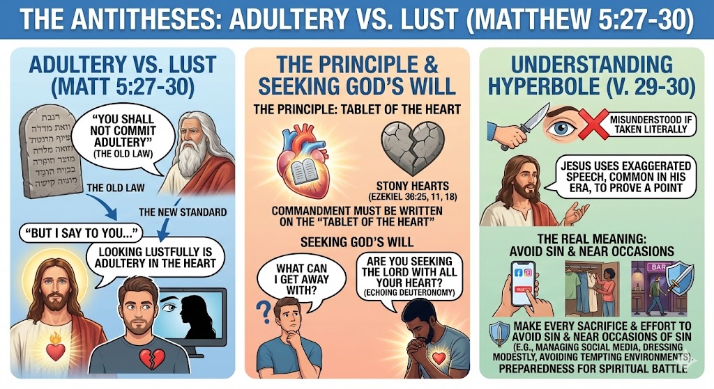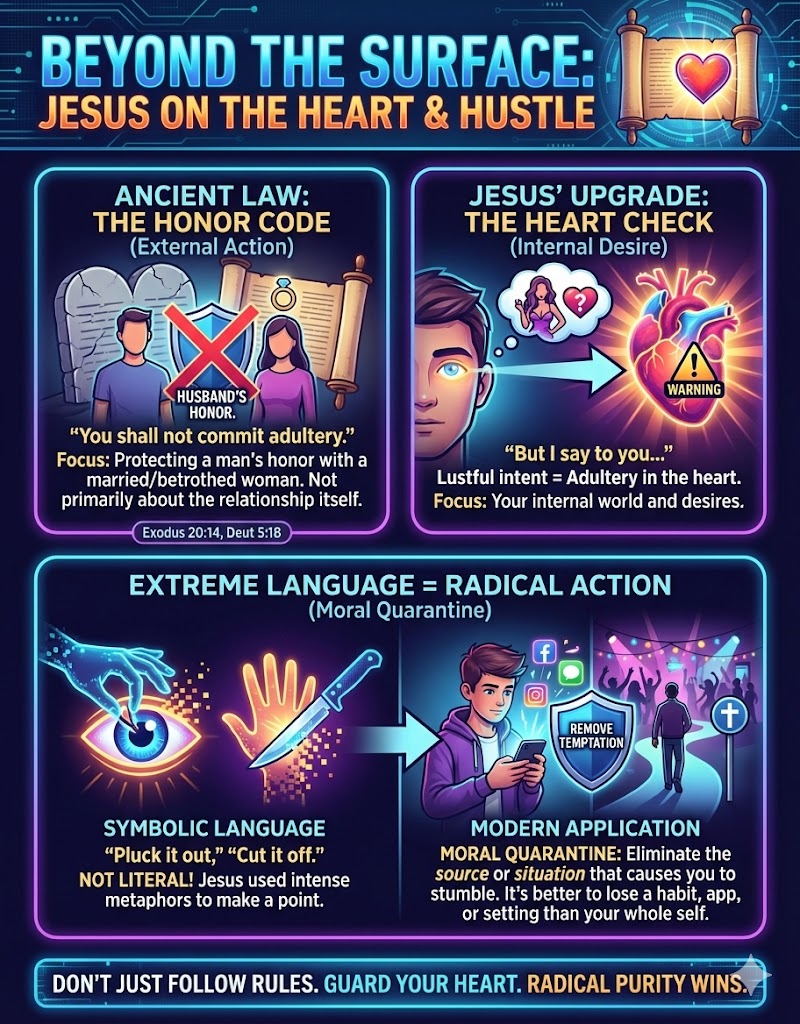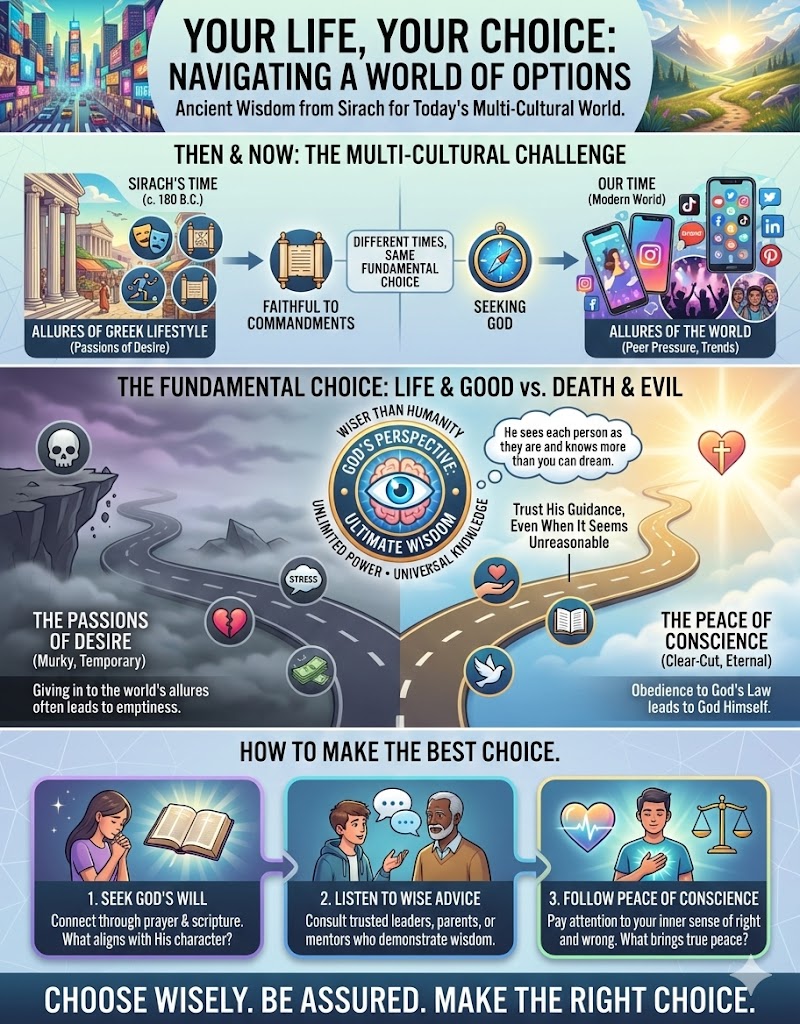 - It sharpens the central choice: He clarifies the fundamental dichotomy presented in the text—the seductive allure of a worldly lifestyle versus fidelity to God’s commandments—framing it not just as a lifestyle preference, but as a choice between life and death.
