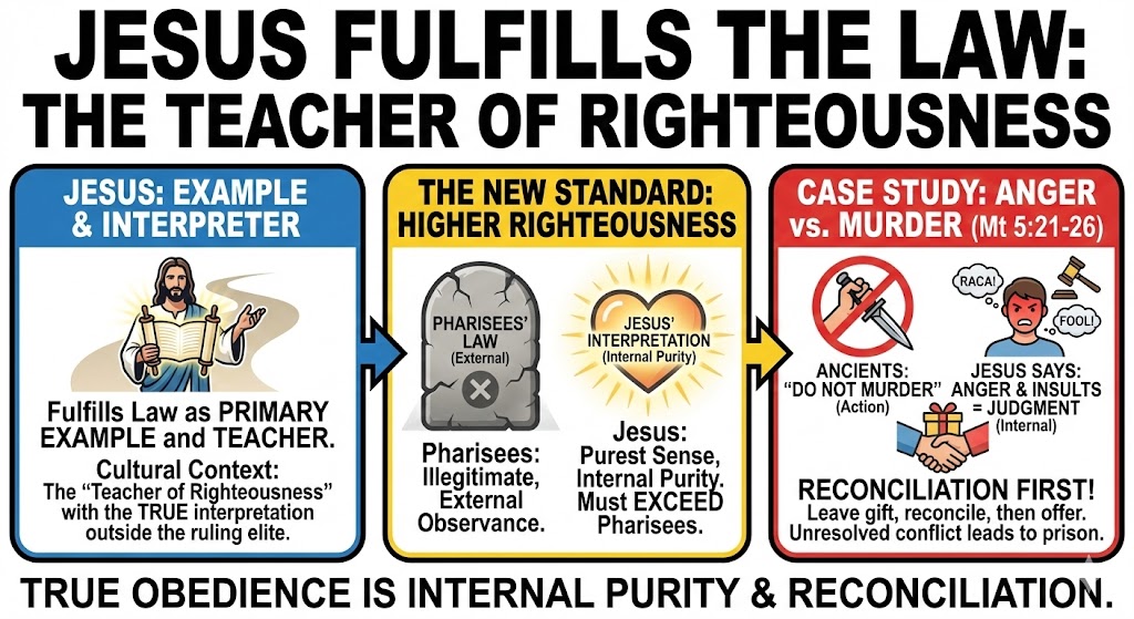 - It clarifies Jesus’s dual role as “fulfiller”: Broding explains that Jesus fulfills the Law in two distinct ways: He is the supreme moral example to emulate and the authoritative interpreter whose teaching defines the Christian community.