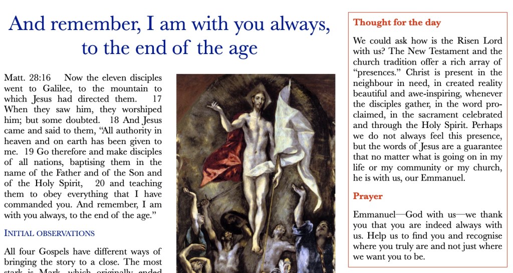 Traditionally, the solemnity falls on a Thursday, forty days from Jesus’ Resurrection as the ancients counted without the concept of a zero place-value, with Resurrection Sunday as day #1. The Ascension is one of the Ecumenical feasts, ranking with the feasts of the Resurrection and Pentecost among the most solemn in the Church’s liturgical calendar. In addition to the day Mass, the Feast of the Ascension also has a vigil Mass. Since the fifteenth century, there is an octave set apart for a novena of preparation for the Feast of Pentecost, according to the directions of Pope Leo XIII.