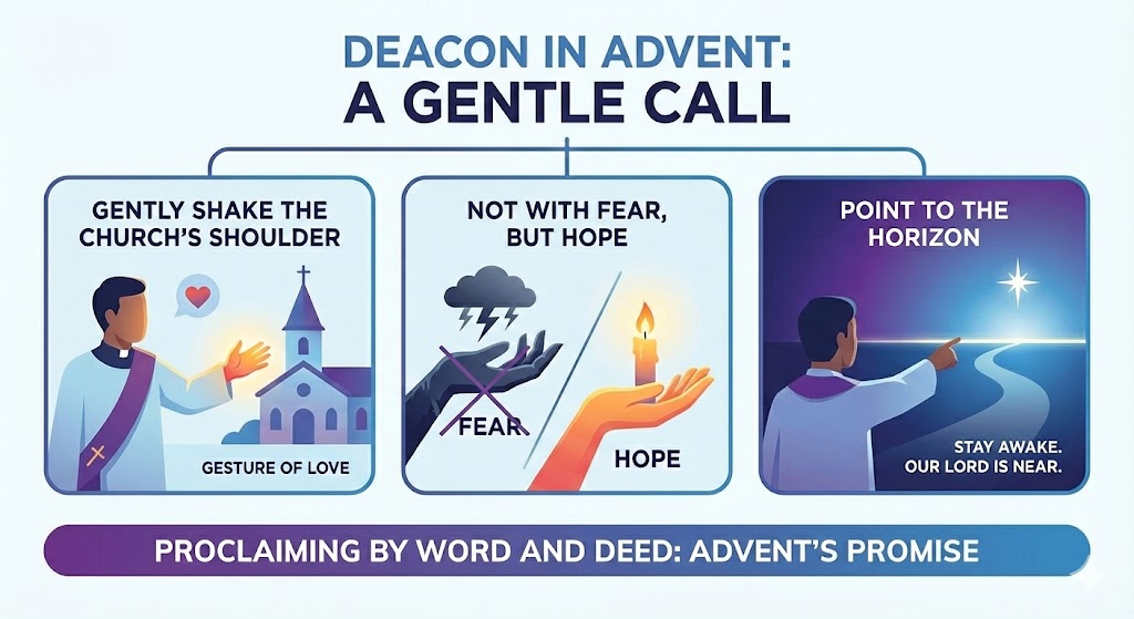 As St. Ephrem the Deacon wrote, “Be wakeful, O soul, and keep your lamp burning, for the Bridegroom is at hand.” For the deacon, that “lamp” is his active ministry of service. To serve as a deacon in Advent is to gently shake the Church’s shoulder, not with a word of fear, but with a gesture of love, and to point with hope to the horizon, proclaiming by word and deed: “Stay awake. Our Lord is near.”