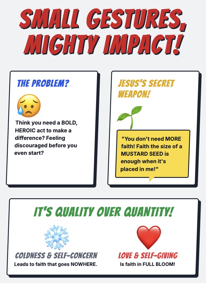 Many Catholics feel spiritually inadequate, a sentiment echoed by the apostles who asked Jesus, “Increase our faith!” They mistakenly viewed faith as a spiritual power-booster for performing miracles. Jesus corrected them, explaining that even faith as small as a mustard seed is powerful when acted upon.