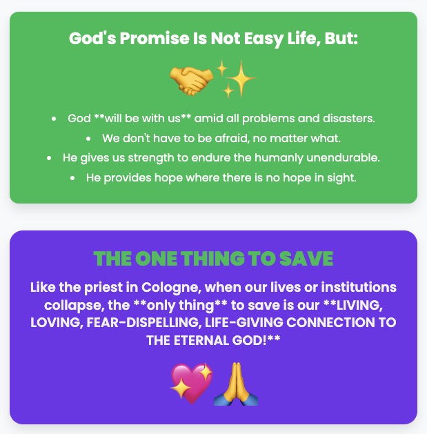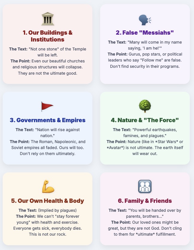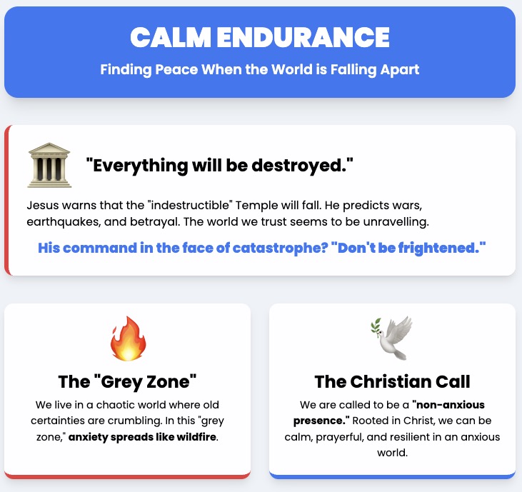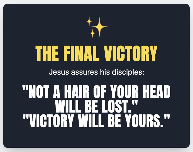 When we see things come crashing down, as we do, remember the words of Jesus. There is no reason to fear, no matter what is taken from us. Even in the midst of turmoil, disasters, and collapse, Jesus’ message is to “fear not” and find strength in God to endure suffering, emphasizing the importance of maintaining a connection to God in times of crisis.