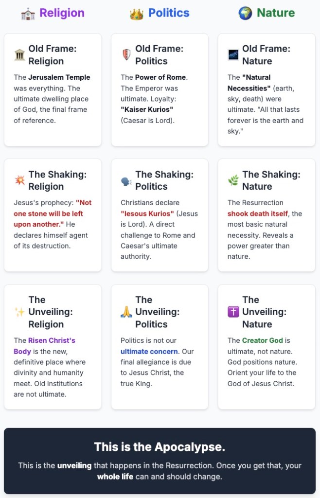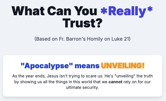 Bishop Robert Barron explains the true significance of “apocalypse” for the 33rd Sunday in Ordinary Time Year C, highlighting that its meaning refers to an unveiling rather than the end of the world. Through the Resurrection of Jesus, the established religious, political, and natural orders are disrupted, challenging our understanding of these realms.