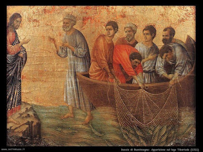 And so, like the Disciples, we labor at familiar tasks. We keep busy but it seems all day long and all night long, we catch nothing. There is just an empty net. But then one day we are aware of the stranger on the shoreline. We cannot quite make Him out, but one day there is someone there and this time something connects. A friend walks into our life, or maybe we are struck by a bible verse. Or in a prayer we have heard a hundred times before there is a new and encouraging word. A sign, a gesture that sparks a slow sensation that things are beginning to come together. There are fish in the net.