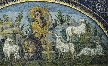 Image: detail from ‘The Good Shepherd’ mosaic, Mausoleum of Galla Placidia photographed by Petar Milošević