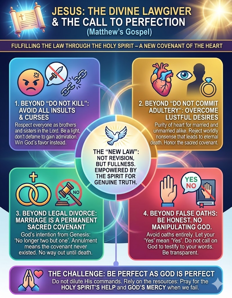 Friends, we have the privilege of continuing to read from the Sermon on the Mount, where Jesus himself lays out his basic teaching. What we find today is Jesus as the new Moses. Like Moses, he goes up on a mountain, and he receives and then gives a new, intensified Law. Jesus wants the corrective power of the Law to go beyond merely the behavioral level and to get down to the level of the heart. We are not called to spiritual mediocrity; we are called to be saints!