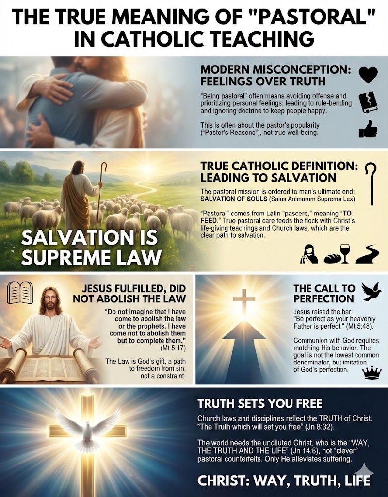 I’ve often heard this argument dragged out of the closet to justify any departure from Church laws or teachings, “We have to be pastoral.” By being “pastoral”, according to this antinomian reasoning, is to have the well-being of people as the paramount consideration. ‘What exactly can be considered the “well-being of people?” you may ask. Well, in today’s age, this has often been distilled into people’s personal feelings. So ultimately in this context, being pastoral means not offending anyone or making them feel rejected or unwelcomed. Being pastoral seems to make that it is alright to break every rule, disobey every instruction, or even ignore every doctrinal truth, as long as this keeps people happy.