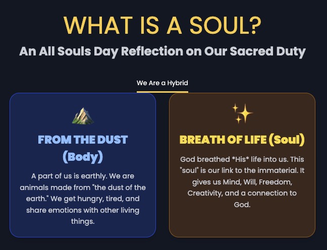 All Souls Day, November 2, falls on a Sunday this year, so we can really spend some time reflecting on this wonderful feast, which means so much to Catholic people. Why do we pray for the souls in purgatory? I wonder if I could begin by reflecting on why we speak of the โsoulโโthis higher principle breathed into us by God that survives the death of the body.