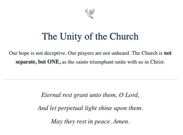 We are all united in the Community of the Church. We are united to the saints in their triumph. We are united with the souls in purgatory in their preparation for