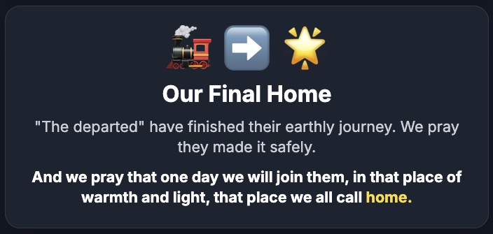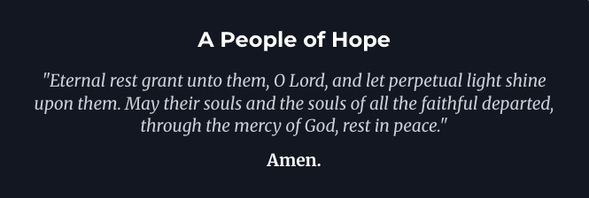 loves us to care for us and our loved ones in life and in death. And so we pray, “Maythe souls of the faithful departed through the mercy of God rest in peace.”