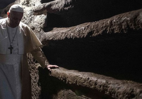 The celebration of the feast of all the departed in a catacomb โ it is the first time in my life that I enter a catacomb, it is a surprise โ tells us many things. We can think about the lives of those people who had to hide, who had that custom of burying the dead and celebrating the Eucharist in here. It was a bad period in history, but one which has not been overcome. It continues still today. There are many of them. Many catacombs in other countries where people even have to pretend to be having a party or a birthday in order to celebrate the Eucharist as it is forbidden in that place. Today too there are many persecuted Christians, even more than in the first centuries; more. This โ the catacombs, the persecution, the Christians โ and these Readings make me think of three words; identity, place and hope.