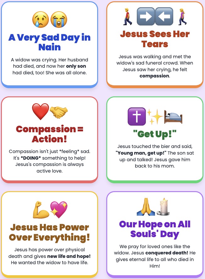 Today is All Soulsโ Day, when the whole Church stands with the Widow of Nain at the threshold of mystery, as we accompany our loved ones to the grave. We know the pain of separation, just as she did. But we also recognise that our prayers for the dead are not empty rituals, for they are joined with Christโs own compassion. We know that Jesus cares deeply for every departed soul and for every grieving heart.