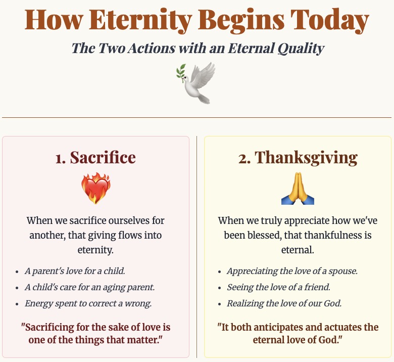 Now usually when we think of the eternal we imagine what happens after death, eternal life with God. Although this is certainly true, todayโs gospel makes clear that such an understanding is incomplete.