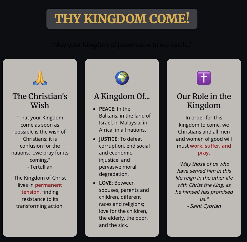 โWho โ or WHAT โ really rules our lives?โ Thatโs a question we could spend all of Advent asking ourselves, and praying over. And maybe we should. But today, I want to spend a few minutes considering not just Christ the King โ but Christโs kingdom. Because this feast reminds us what we pray for, day after day, week after week, when we pray โthy kingdom come.โ