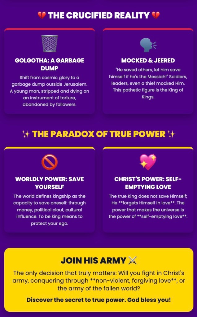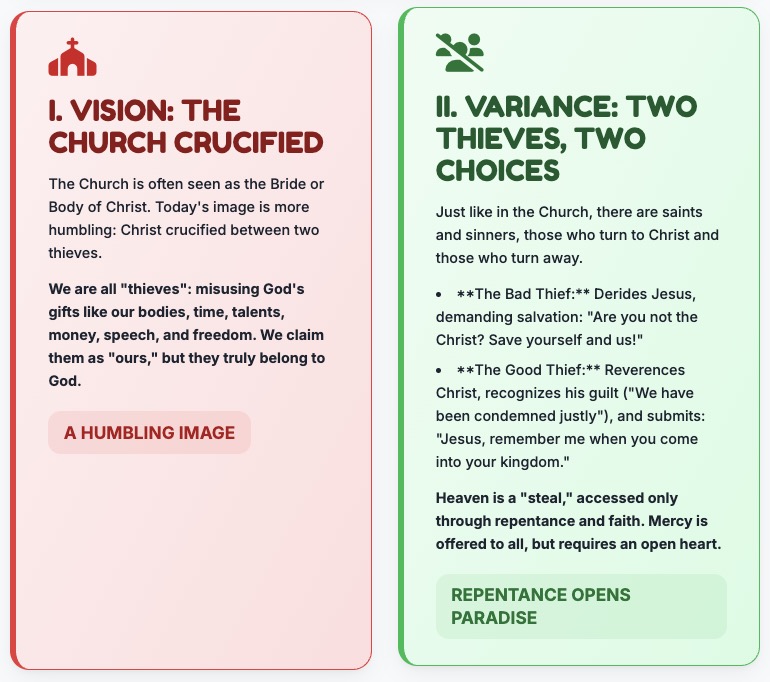 While the inscription “This is the King of the Jews” was meant as an insult, Christ performed his true Royal Decree: offering infinite mercy to the helpless criminal (“Today you will be with me in Paradise”). The homily urges us to avoid being consumed by the world’s treasure (earthly wealth) and instead seek the King’s true treasure of “infinitely greater value”: reconciliation, forgiveness, and deliverance from darkness.