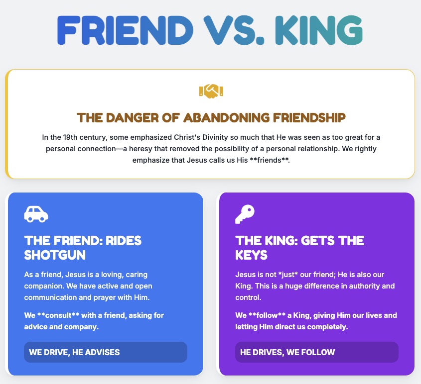 The homily first acknowledges a historical tendency to overemphasize Christ’s divinity, which wrongly made a personal relationship seem impossible. It affirms that Jesus is our loving, caring Friend, urging us to have open communication with Him.