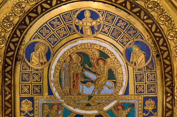 The image above is of an enamelled triptych, c.1150, found in the Victoria and Albert Museum, London.
