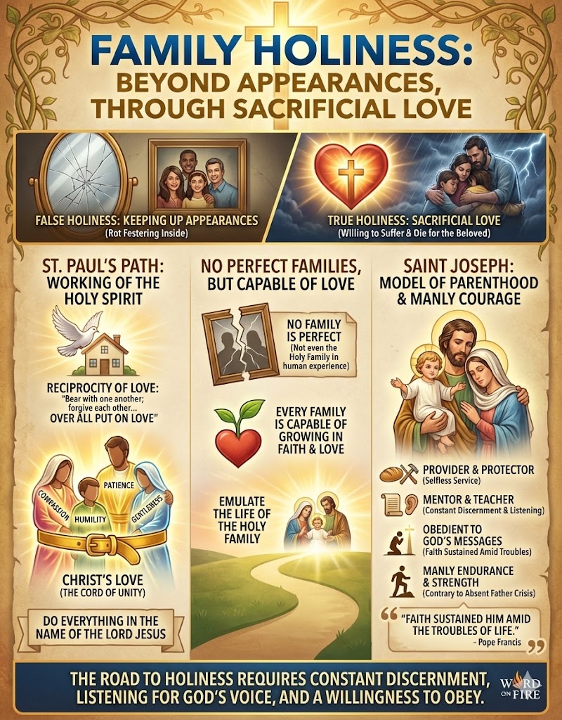 We can learn in the example of the Holy Family that, despite all our failures and difficulties, we too are called to become holy through living out God’s word in the midst of our families. The Holy Family is holy because it is responsive to the demanding word of God spoken in the very trying circumstances of their daily lives. In an ordinary family, the members of the family may get frustrated with each other. They may occasionally argue. But ultimately, the members are called to love each other, support each other and forgive each other. They may not do it perfectly, but they will try to be holy. When they fail, Christ and the Church offers them the grace through the Sacraments to do better. What about your family? Despite your failures and imperfections, there is hope that your family can be like the Holy Family. Regardless of your family’s situation, there is hope for you. You are called to holiness. Holiness will look very different from one family to another. But the most powerful thing you can do is to daily entrust the health, healing, and holiness of your family to God.