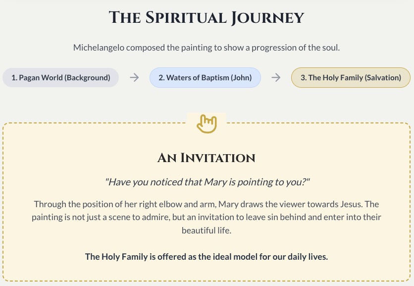 Today is Holy Family Sunday, so let’s take a moment to reflect on Michelangelo’s famous painting of The Holy Family. [i] It’s also known as the Doni Tondo [ii] and you’ll find it in the Uffizi Gallery in Florence.