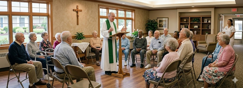 - Nursing Home / Assisted Living: Focuses heavily on comfort, the dignity of the elderly, uniting suffering with Christ, and the hope of heaven.