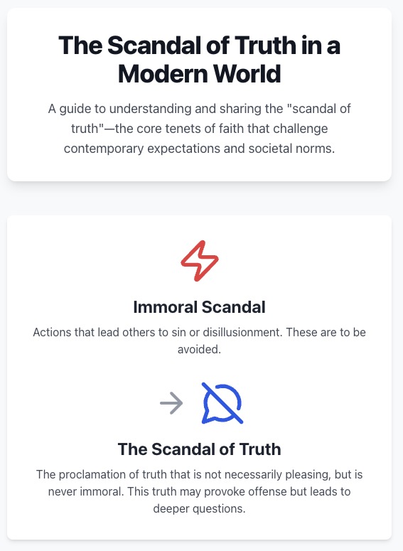 - Initial prompt: The author makes a critical distinction between “immoral scandal” and “the scandal of truth.” How does the text define the latter, and what is its purpose?