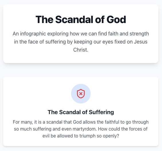 3 The Scandal of God: This theme addresses the deepest level of human questioning: the problem of evil. The notes speak of the scandal that God allows suffering and martyrdom to occur. This is a scandal to human reason, which struggles to reconcile a good and powerful God with the existence of pain and evil. The notes powerfully propose that the answer to this “scandal” is not a philosophical argument but a person: Jesus Christ. By looking at his Cross, we see that God himself entered into suffering. By looking at his Resurrection and enthronement, we see that suffering is not the end; it is the path to glory.nd confidence.
