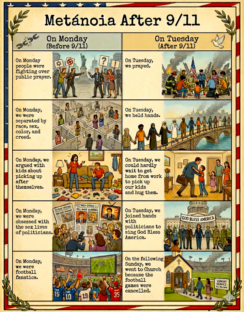 Billy Graham Evangelistic Association (01:46) – Just days after the September 11 attacks, Billy Graham addressed the nation from the National Cathedral in Washington, D.C.