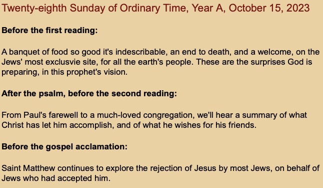 28th Sunday in Ordinary Time Year A Homily 2023