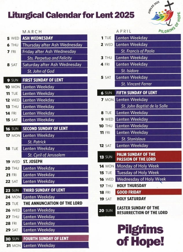 Lent 2025 begins on Ash Wednesday, March 5, 2025. To help you on your Lenten Journey during this Jubilee Year as Pilgrims of Hope, this Lenten eBook contains 67 Ideas and Suggestions for Prayer, Fasting and Almsgiving and a 2025 Lenten Liturg